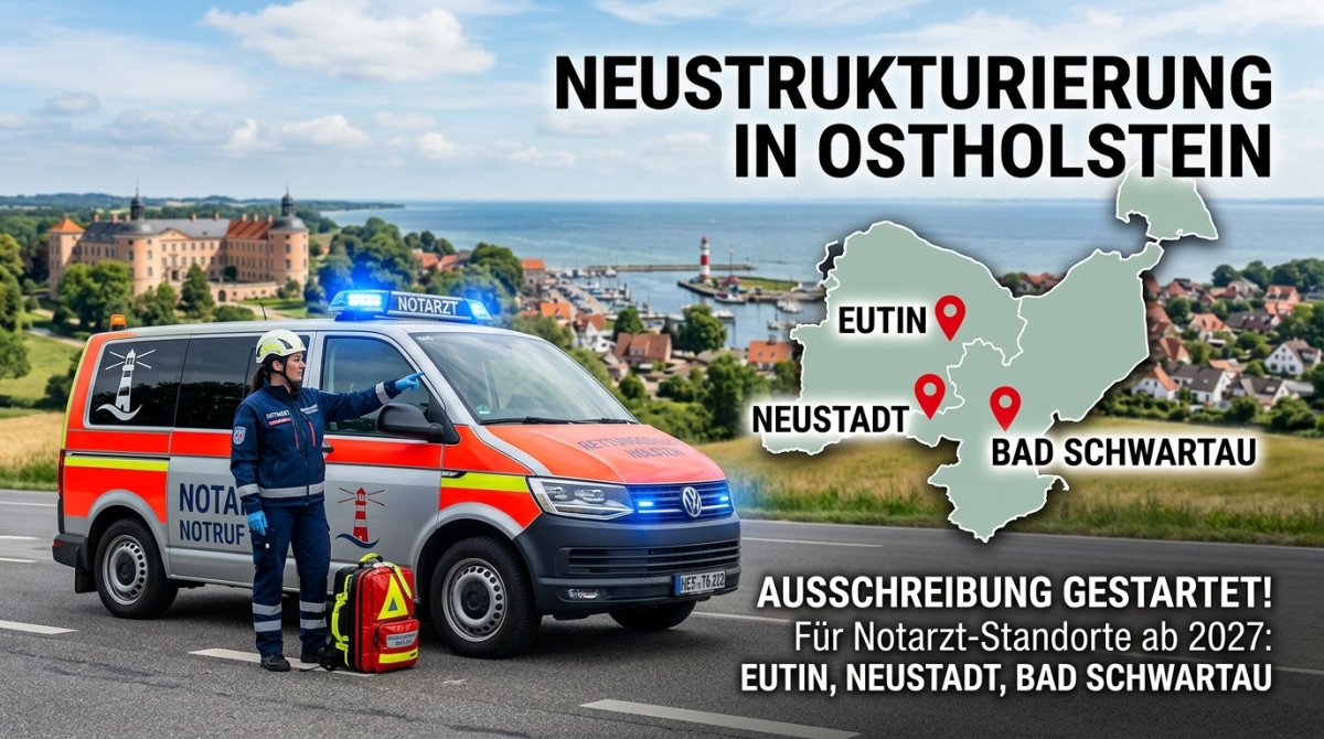 Der Rettungsdienst im Kreis Ostholstein steht vor einer organisatorischen Neuausrichtung. Die Rettungsdienst Holstein Anstalt öffentlichen Rechts (rdh) hat die Durchführung der notärztlichen Versorgung für mehrere zentrale Standorte neu ausgeschrieben. Die Neuregelung betrifft den Zeitraum ab dem 1. Januar 2027 und umfasst eine Laufzeit bis Ende 2031, mit der Option auf eine einjährige Verlängerung.