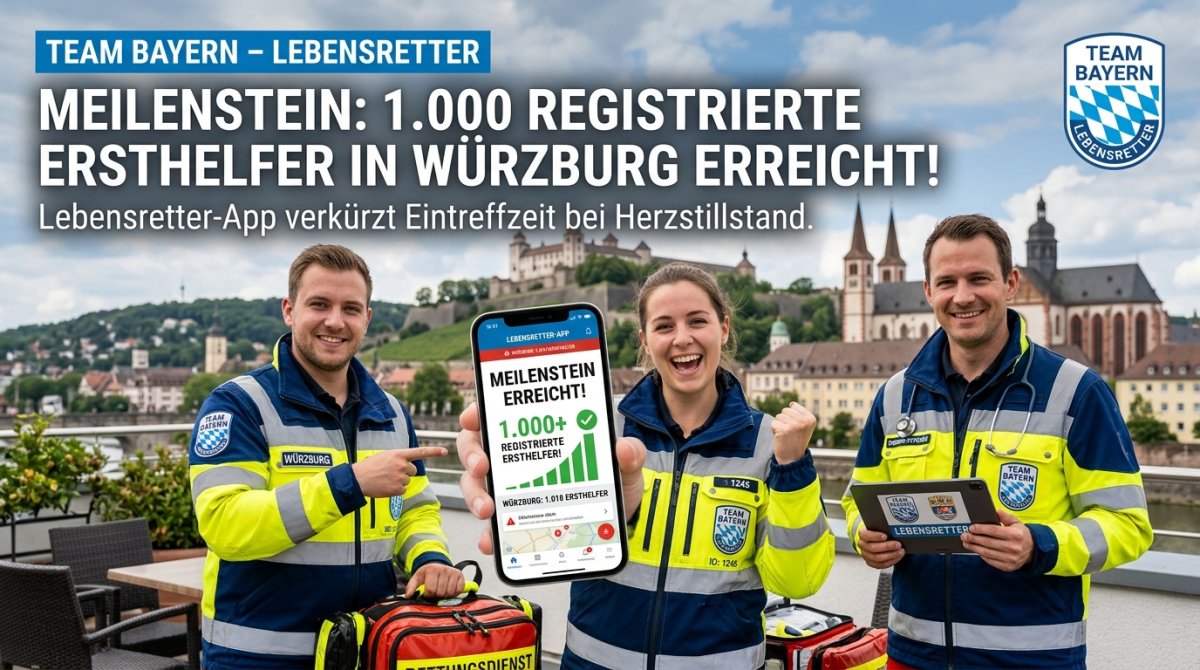 Nur rund sechs Wochen nach dem offiziellen Start der Ersthelfer-App „TEAM BAYERN – Lebensretter“ im Rettungsdienstbereich Würzburg wurde ein bedeutender Meilenstein erreicht: Die 1.000. Helferin hat sich erfolgreich im System registriert. Damit verfügt die Region über ein dichtes Netz an qualifizierten Freiwilligen, die im Ernstfall lebensrettende Minuten überbrücken können.